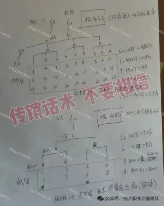 模式:该传销组织打着“平债”“消除违法记录”等谎言,引诱不明真相的人群到河北某市,进行洗脑,鼓吹投资2900元至43500元加入该组织,通过五级三阶制发展下线,可平掉债务,消除违法记录,达到经理级别以后,出局可以获得1.5亿元的回报。