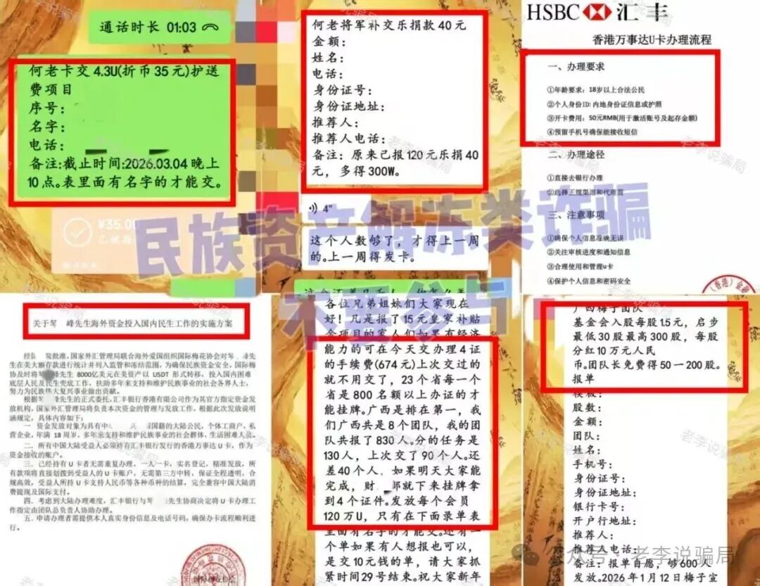 不法分子打着“国家项目”的旗号,要求参与者提供个人信息,每天扫描签到走通道,声称为参与者发放100万“富雨”,这些承诺根本不可能兑现,就是骗子用来忽悠人的工具。千万不要因为暂时不交钱,就免费给骗子“打工”