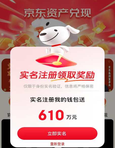 不法分子冒充“京东”公司的名义,声称公司将发放专项兑现资金,用于改善生活,养老防老,参与者实名注册,提供个人信息,即可获得610万元的专项兑现金。