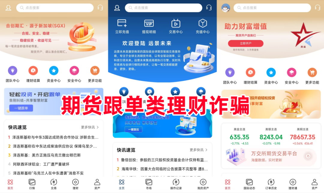 近年来,以跟单为噱头的骗局层出不穷,不法分子冒充、虚构公司,以稳赚不赔为诱饵,引诱投资者进行投资,最后进行收割。该软件与去年曝光的“远景未来”“万交所”APP封面雷同。
