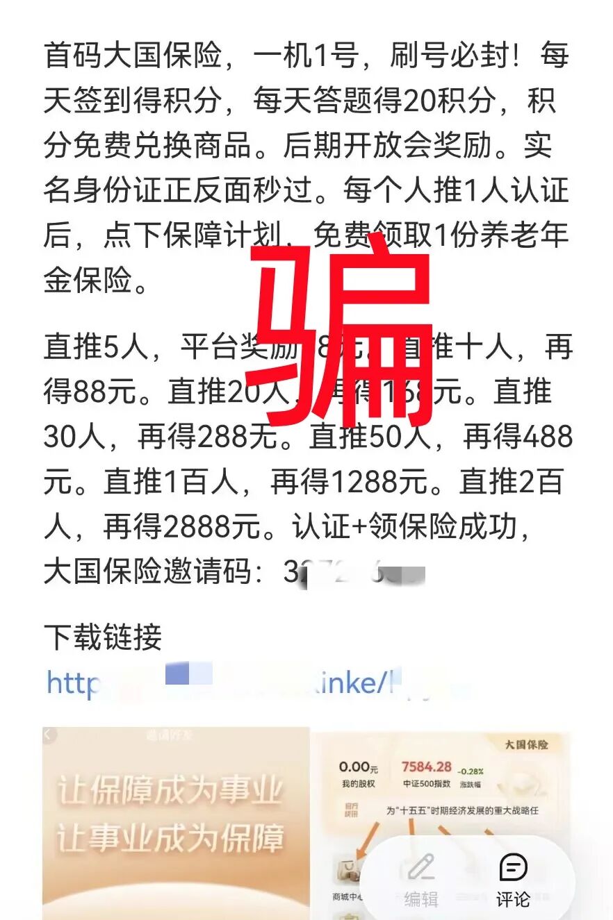 近期网络中上线了大国保险APP,该项目的网站IP地址在美国,系非法网站,根据宣传资料看出推广模式涉嫌传销活动,我国没有“大国保险”,这是杜撰编造出来的诈骗项目,请大家提高警惕,以免上当被骗。