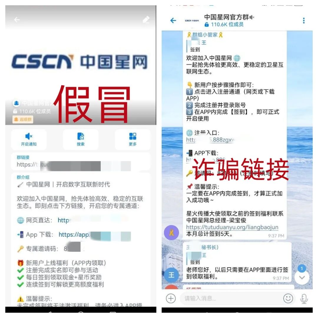 近日,网络中出现了假冒中国卫星网络集团有限公司的“中国星网”APP,该项目宣传“实名认证注册就给30万元,每天签到给1万元...........”,这是一眼假的骗局!