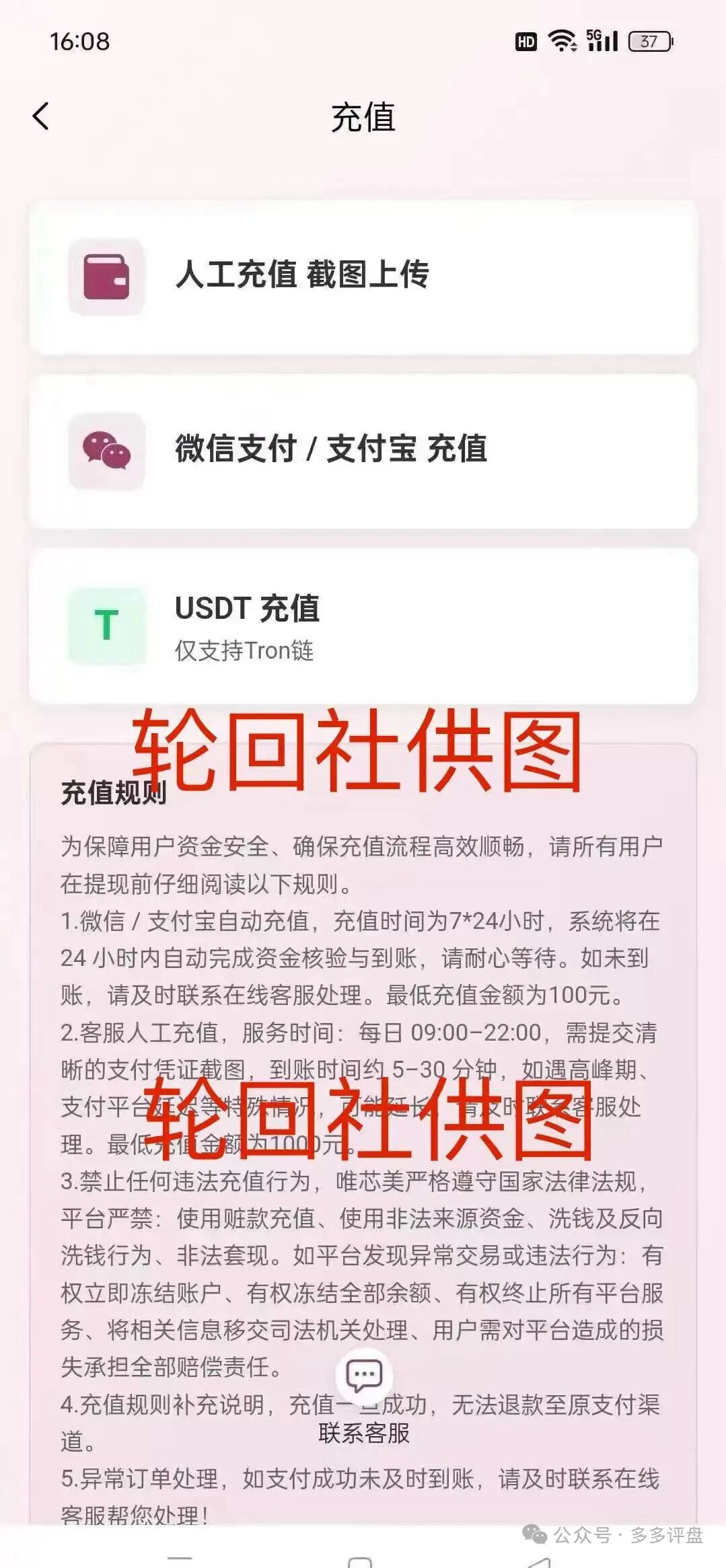 平台上架各类医美仪器,标出高额收益,用诱人数据让人觉得投入几千几万,一年就能回本赚收益。界面功能看似齐全,还支持USDT虚拟币充值,刻意伪装成正规大平台。但充值规则漏洞明显,充值概不退还,人工充值最低1000元且转入私人账户,虚拟币交易更是匿名难追,种种迹象都表明,该平台早已做好卷钱跑路的准备。