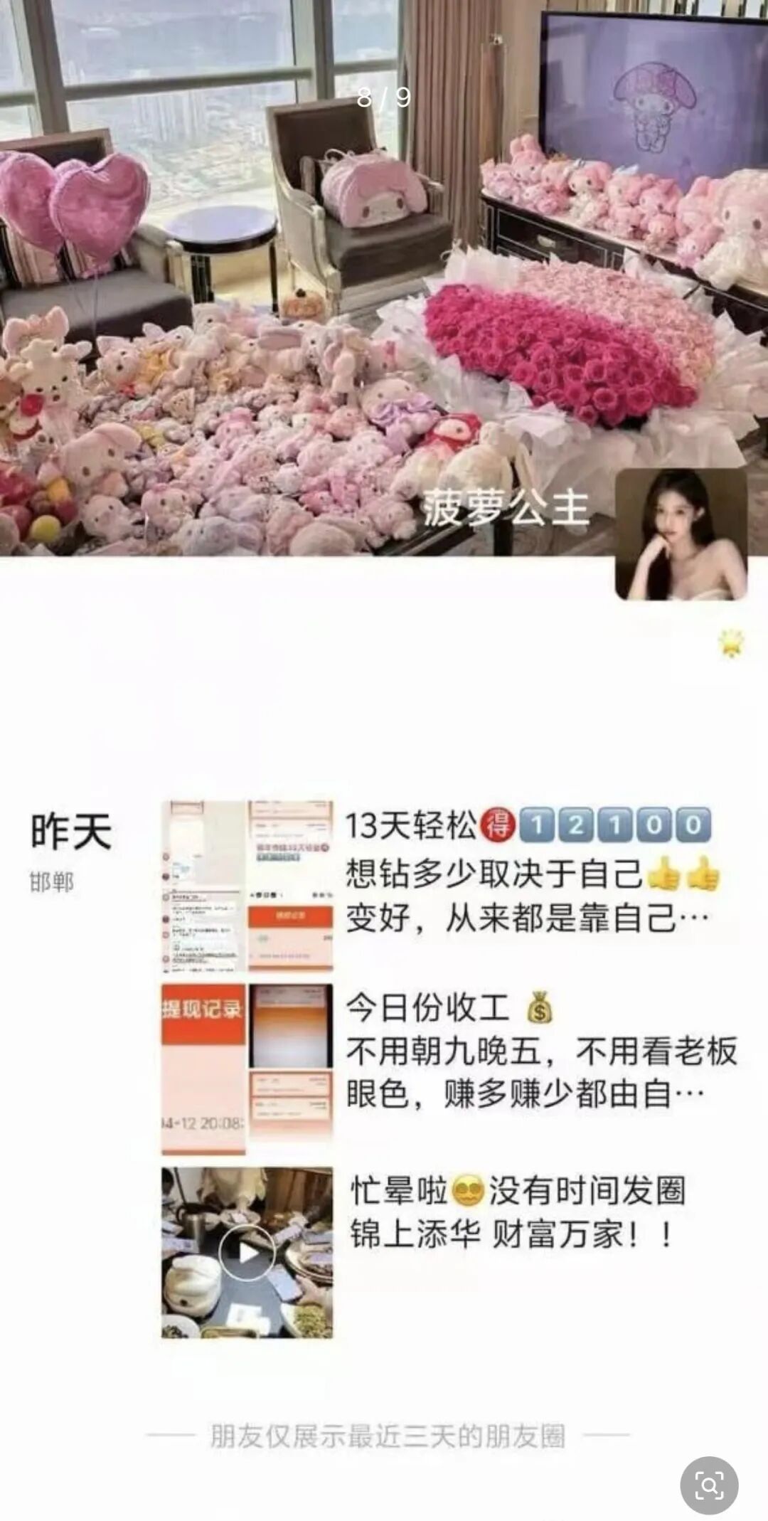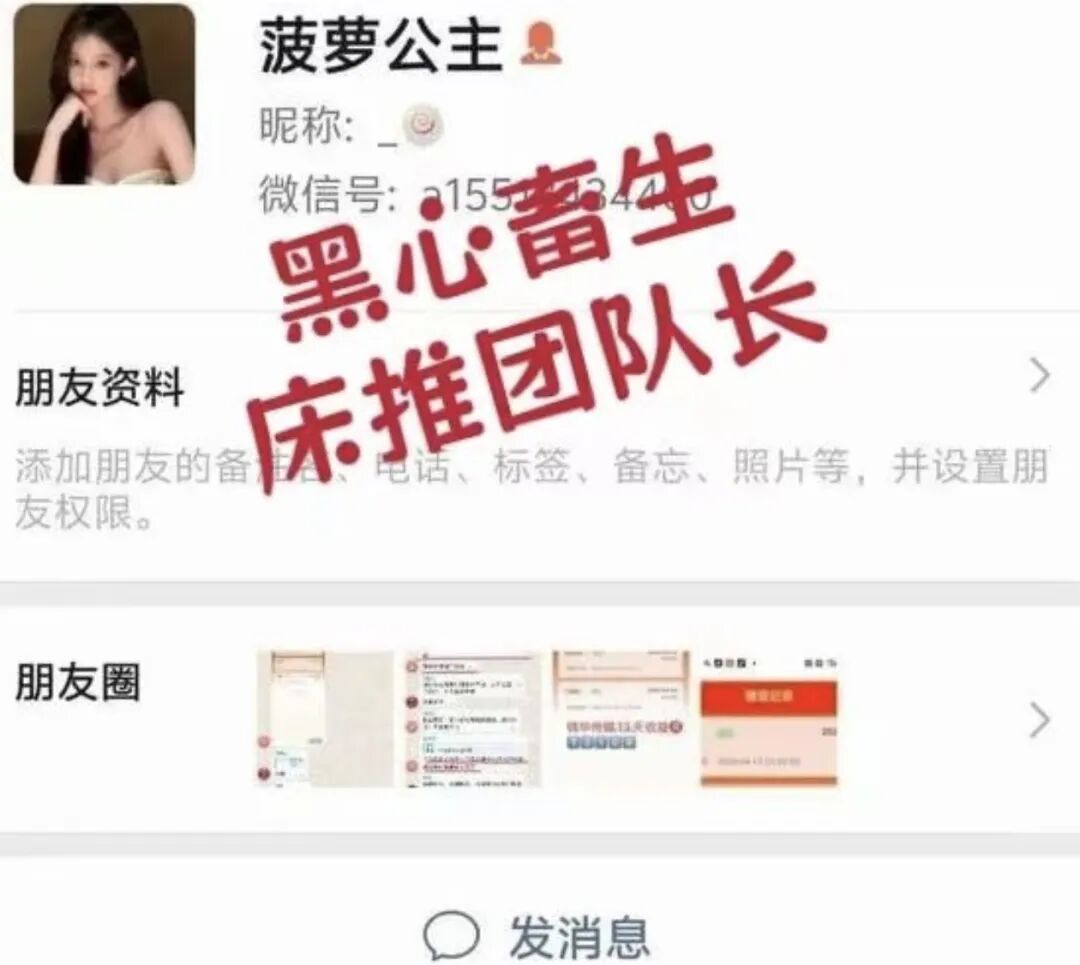 不得不说,女孩子在这个圈子里,确实比男的好混太多,成交率高得离谱。随便发几条语音、晒几张朋友圈照片,实在不行再用上所谓的 “床推” 手段,基本一搞一个准,赚钱对她们来说,比我们普通人容易太多了。